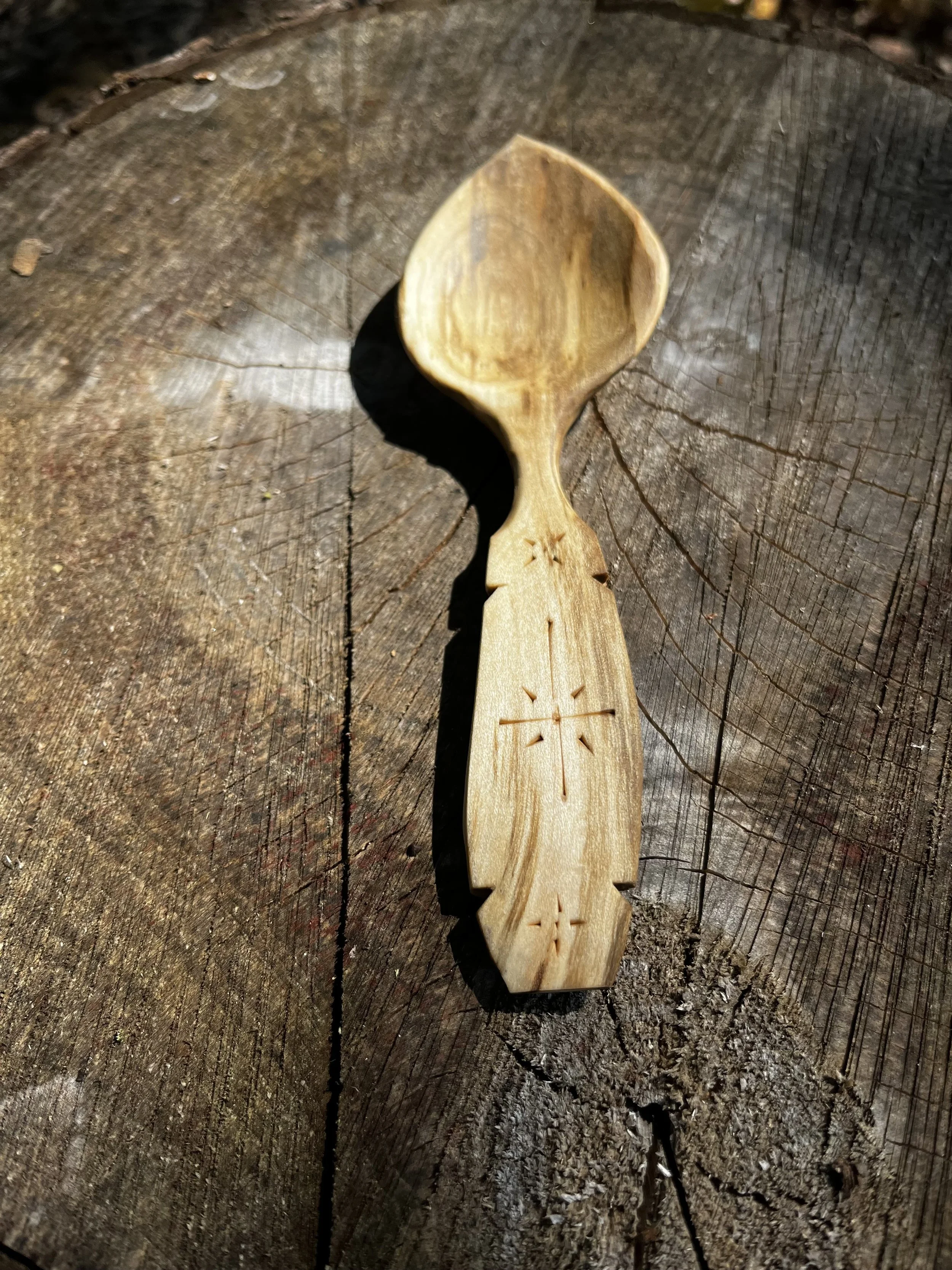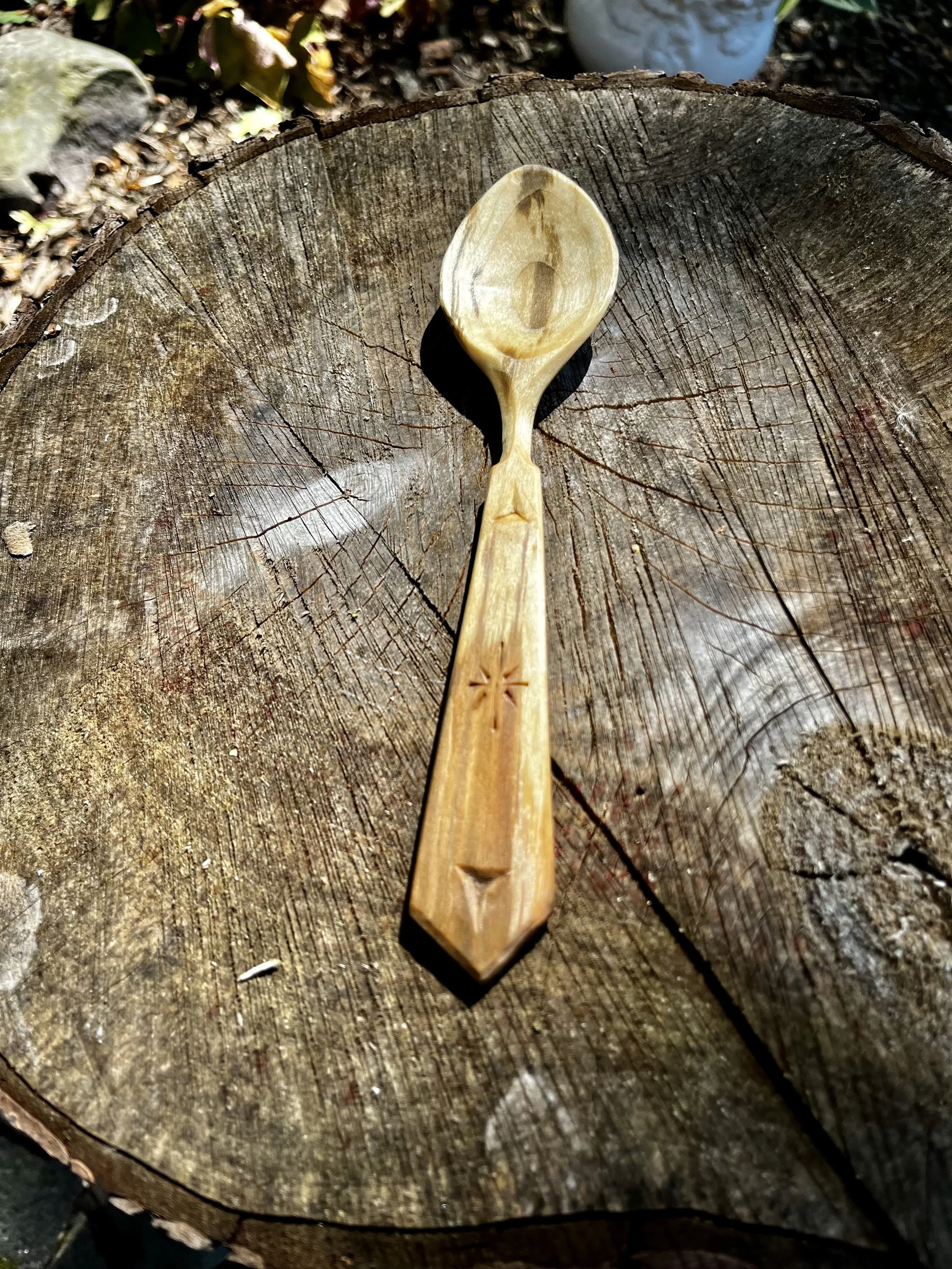 Raised bowl long handled eating or serving spoon